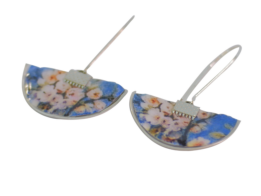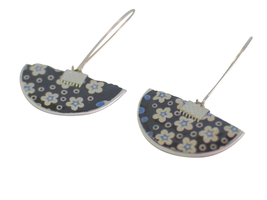 long earrings white & blue flowers coffee capsules