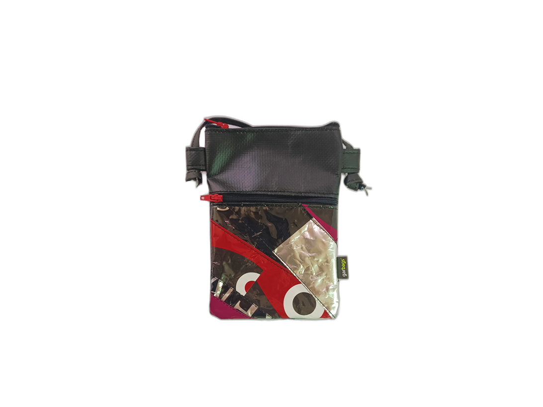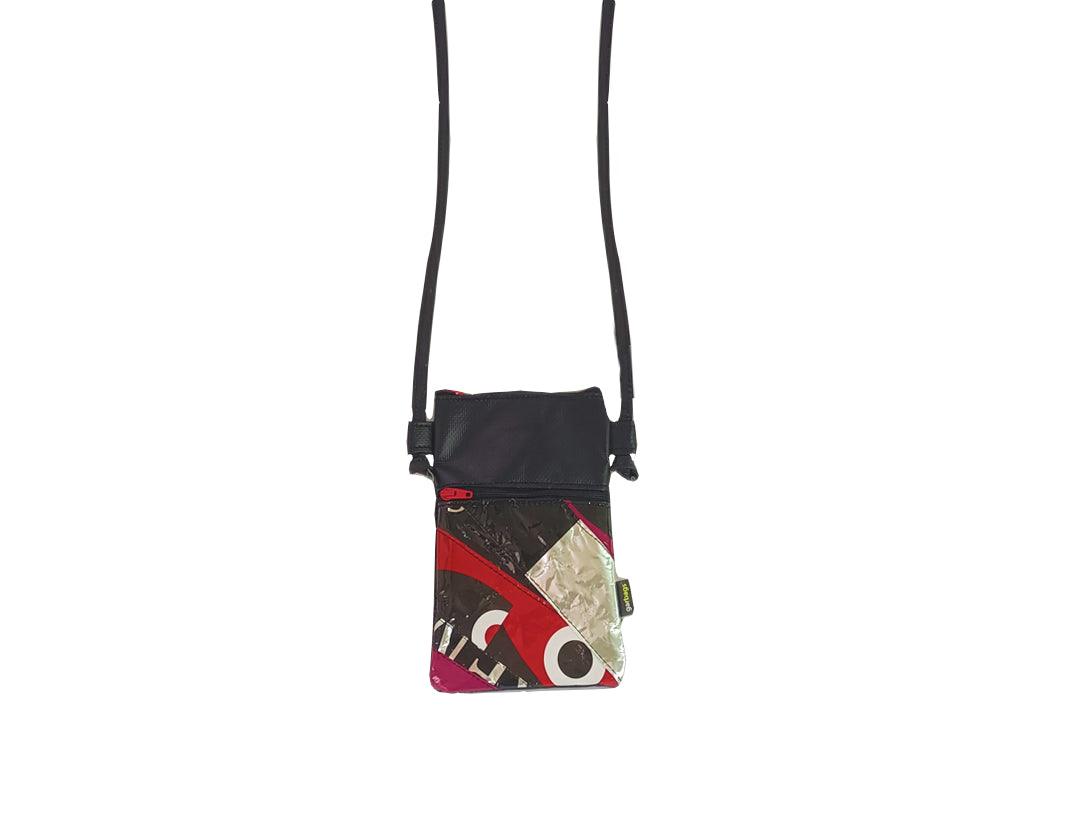 Crossbody Phone bag coffee package black, pink and red patchwork