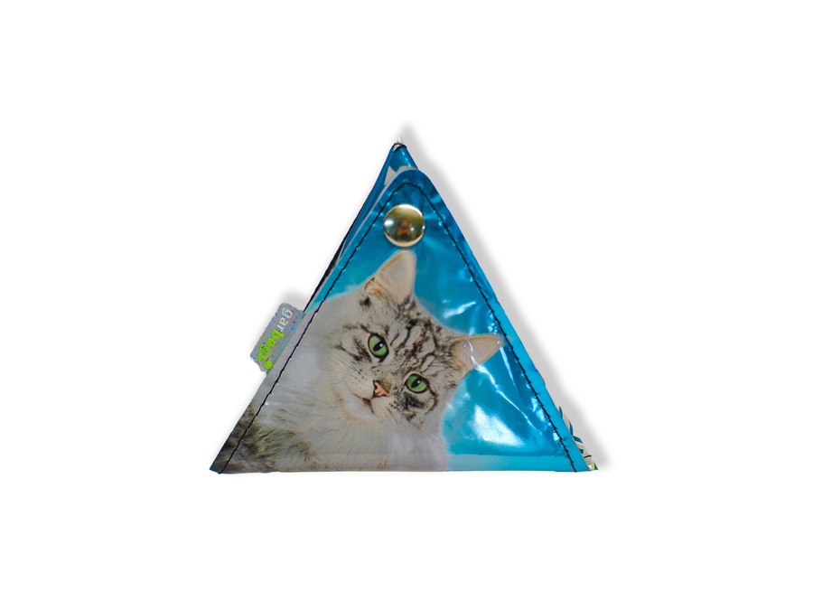 triangle purse cat food package blue