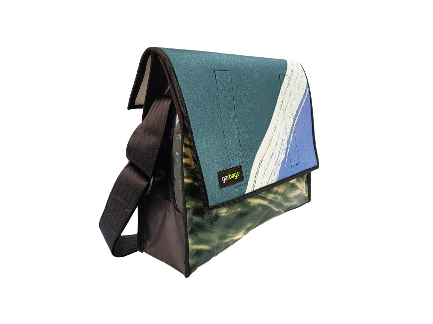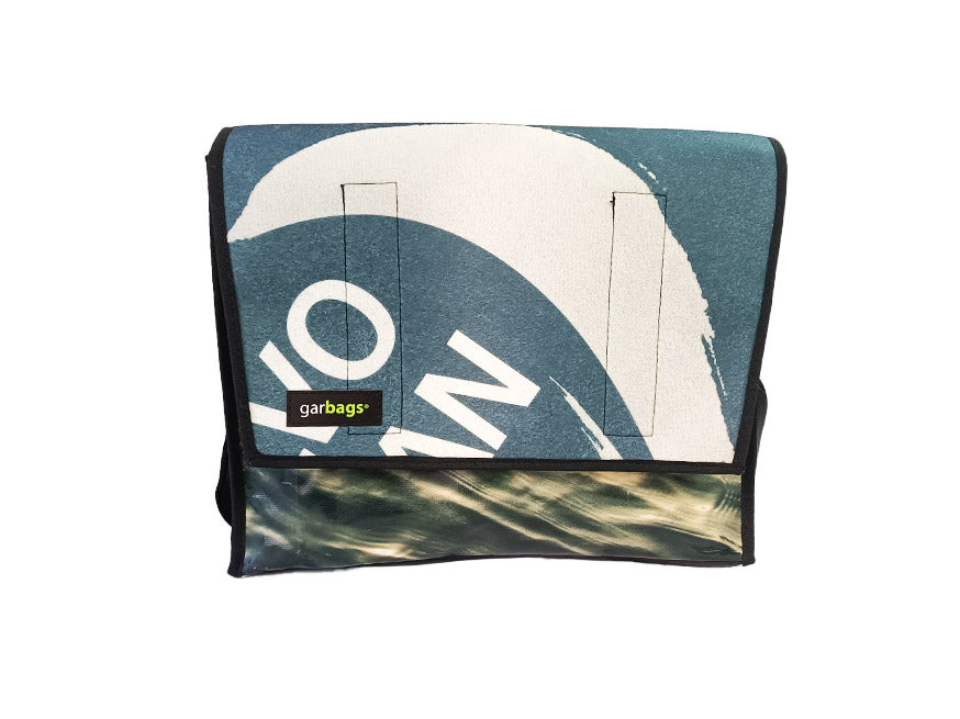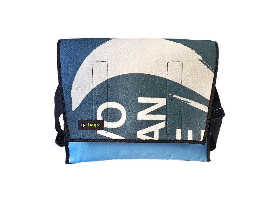 Messenger Bag XL publicity banner white stripe and two tone blue