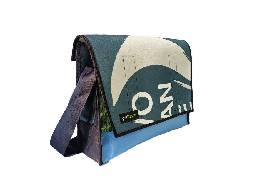 Messenger Bag XL publicity banner white and two tone blue