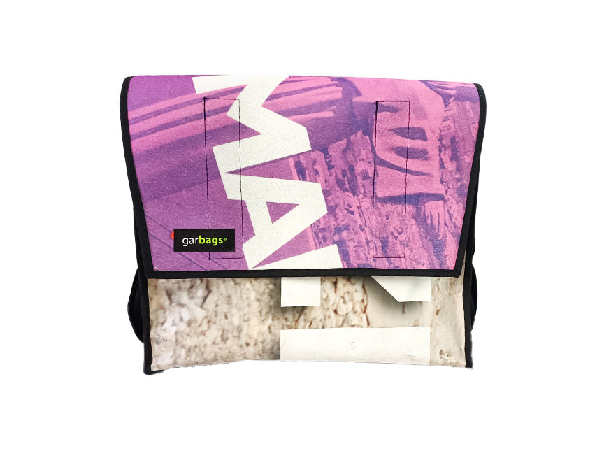 Messenger Bag XL publicity banner white letters and pink