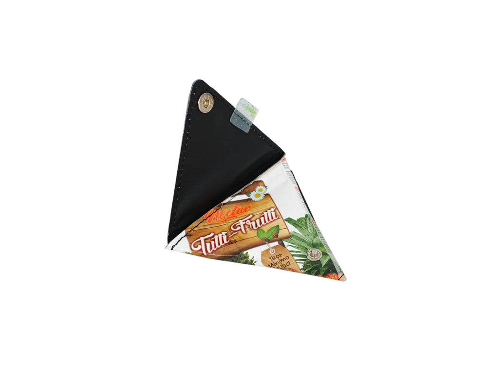 Uma carteira em forma triangular com 2 bolsos. Perfeita para as suas moedas!